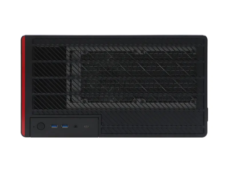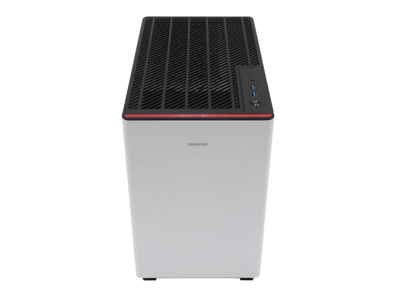 滑らかな角丸のシンプルかつスマートな外観で様々なインテリアにも馴染みやすいデザインとなっています。サイズは幅約215mm × 高さ約347mm × 奥行約401mmで、容量は約30Lとコンパクトながら、ボトムからトップへのスムーズなエアフローを実現する「垂直エアフロー構造」採用で冷却性能も優れています。上面にはUSB Type-A 3.2 Gen1×2を備えており、周辺機器の接続も容易です。